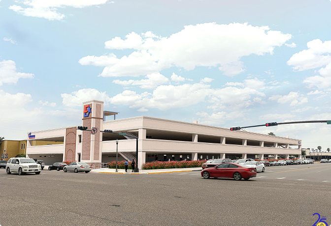 To support downtown Edinburg’s growth, the City is investing in a three-level parking garage with capacity for 267 vehicles. The facility will improve accessibility, reduce congestion, and provide critical support for the new Hidalgo County Courthouse, as well as surrounding businesses, entertainment venues, and civic spaces.